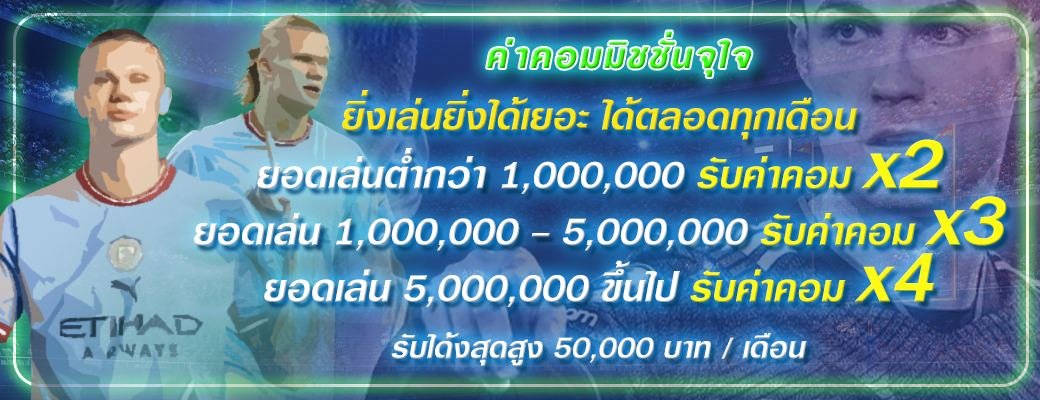 รับค่าคอมมิชชั่นคูณ 2 ถึง คูณ 4 ตามยอดเล่น ได้รับทุกเดือนยิ่งเล่นเยอะ ยิ่งได้เยอะ
